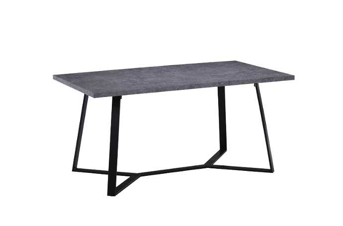 Mesa de madera de cubierta gris, con base de metal que representa totalmente el estilo industrial, combinando los elementos y generando calidez en los espacios.